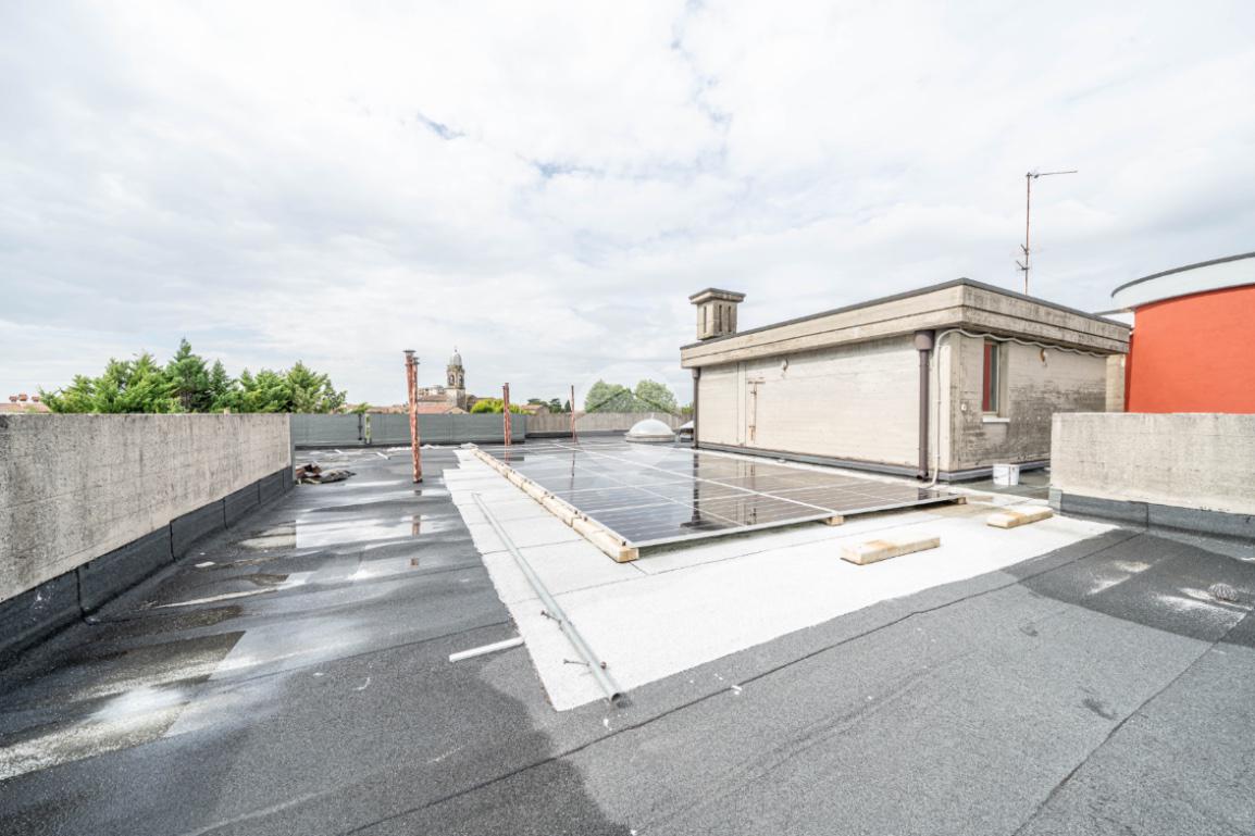 Tramite la scala a chiocciola interna si accede al tetto, attualmente in manutenzione, dove è presente un locale adibito a lavanderia e stireria e un locale termico dedicato al fotovoltaico, con accesso ad un ampio terrazzo panoramico di circa 400 mq, perfetto per momenti di relax o convivialità.