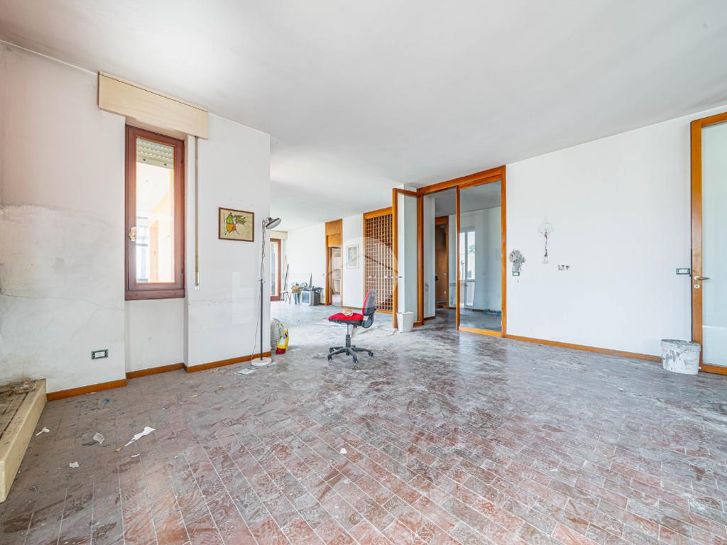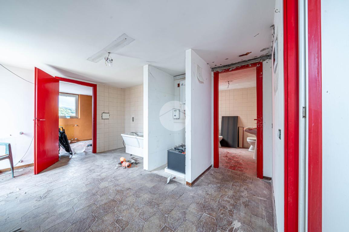 Al piano rialzato, si trova una zona abitativa di circa 110 mq completamente ristrutturata, composta da soggiorno e cucina open-space, due camere da letto matrimoniali, due bagni e tre balconi ; uno spazio luminoso e accogliente facilmente trasformabile in ufficio o sala operativa secondo le proprie esigenze.